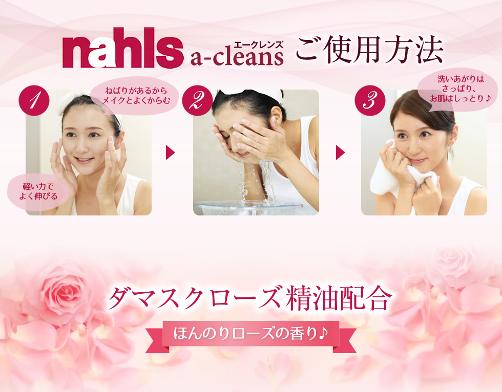 nahlsエークレンズは、うるおい成分をキープしながら汚れを落とします。