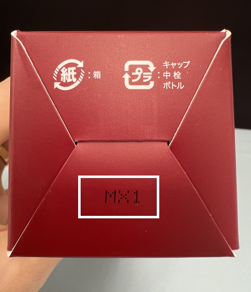 年内くらいは該当ロットの商品の販売を継続いたしますので、上の写真のように化粧箱の底面を見ていただき、製品のロット番号【MX1】のナールスピュアをお買い上げいただいた際は、紙粉が付着している可能性がございます。