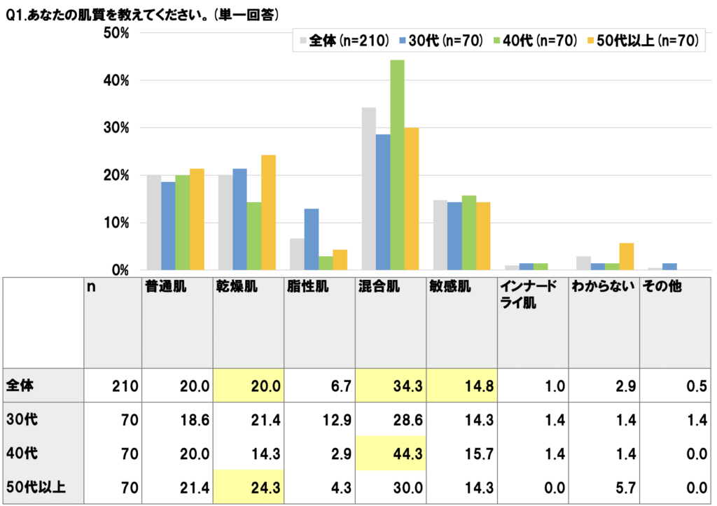 クレンジングを選ぶときは、自分の肌質に合ったタイプを選ぶことが大切です。調査結果によると、混合肌(34.3%)や乾燥肌(20.0%)、敏感肌(14.8%)の人が多く、肌に優しい処方が求められていることが分かります。特に「オイルフリー」のクレンジングは、肌への負担を抑えたい人やニキビ・毛穴トラブルを避けたい人におすすめです。