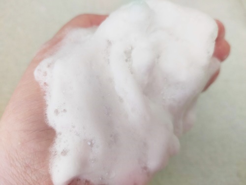 水を含ませて泡立てると、とても泡立ちやすくふわふわのキメ細かな泡が出来上がりました♪