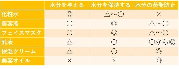 <さまざまなスキンケアアイテムの保湿の役割>
