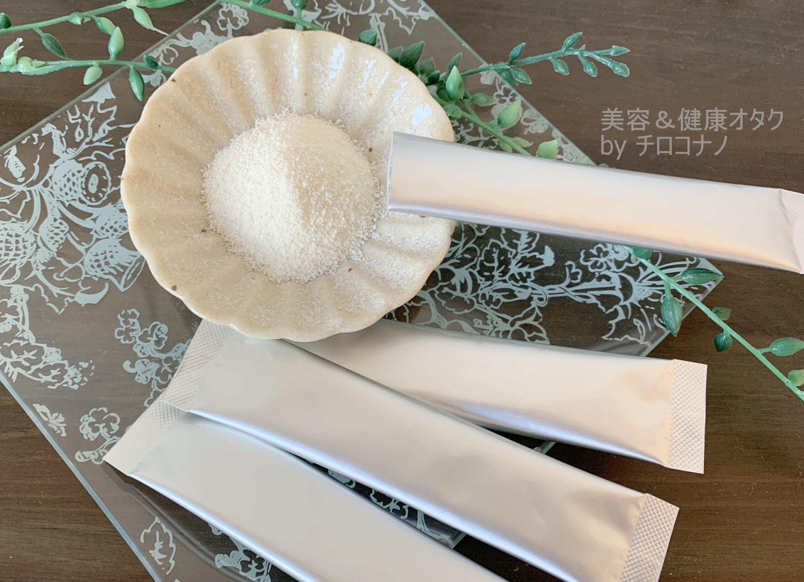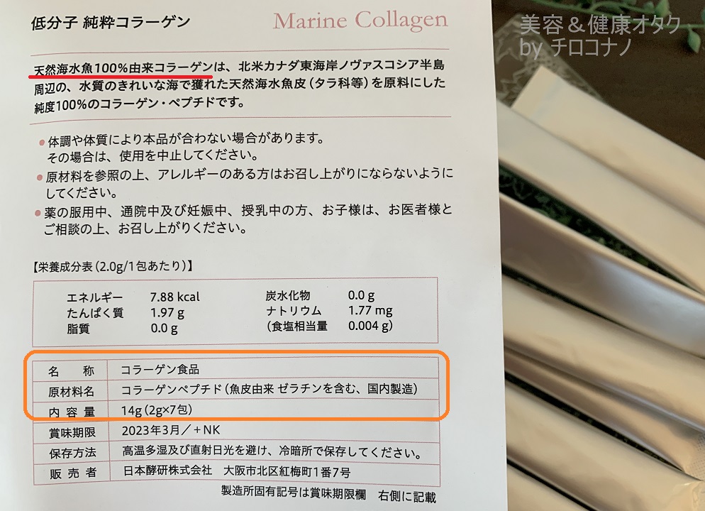チロコナノさんがご紹介くださったように、ナールスの低分子純粋コラーゲンはそれ以外は完全無添加。また、マリンコラーゲンなのでにおいがほとんどなく飲みやすいのがメリットです。