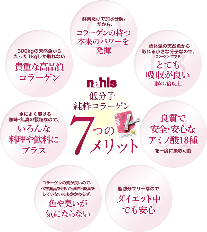 今や、飲むコラーゲンの美肌効果も証明されているので、ぜひ、ナールスのエイジングケア化粧品と併せて続けてい頂きたいアイテムです。