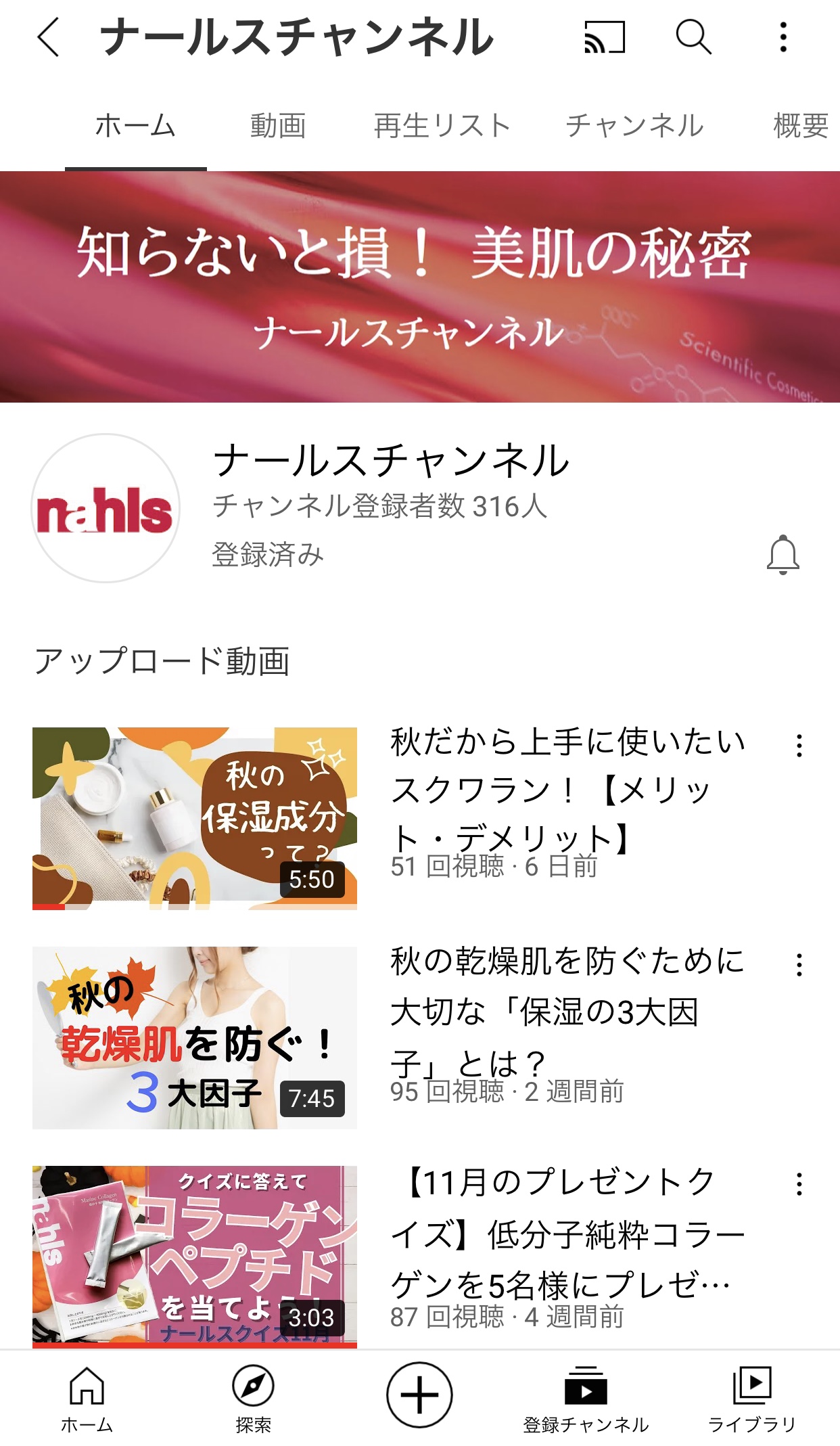 2.正しいエイジング情報が動画で見れる「ナールスチャンネル」
