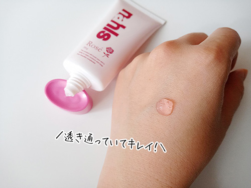 柔らかいチューブを押すと、うっすらピンク色のジェルが。キラキラきれいで…出すたびに心躍ります♪