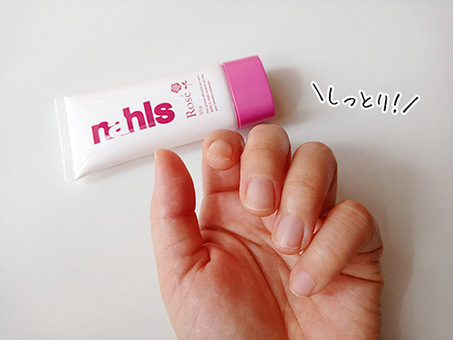 ナールス ロゼは塗り伸ばすときのローズの香りも手指がサラサラになる頃には落ち着くので、家事中も気にせず使えました。