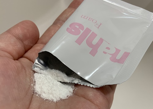 2.泡立てる「ナールス フォームを1包を手にとりぬるま湯を加えて泡立てる