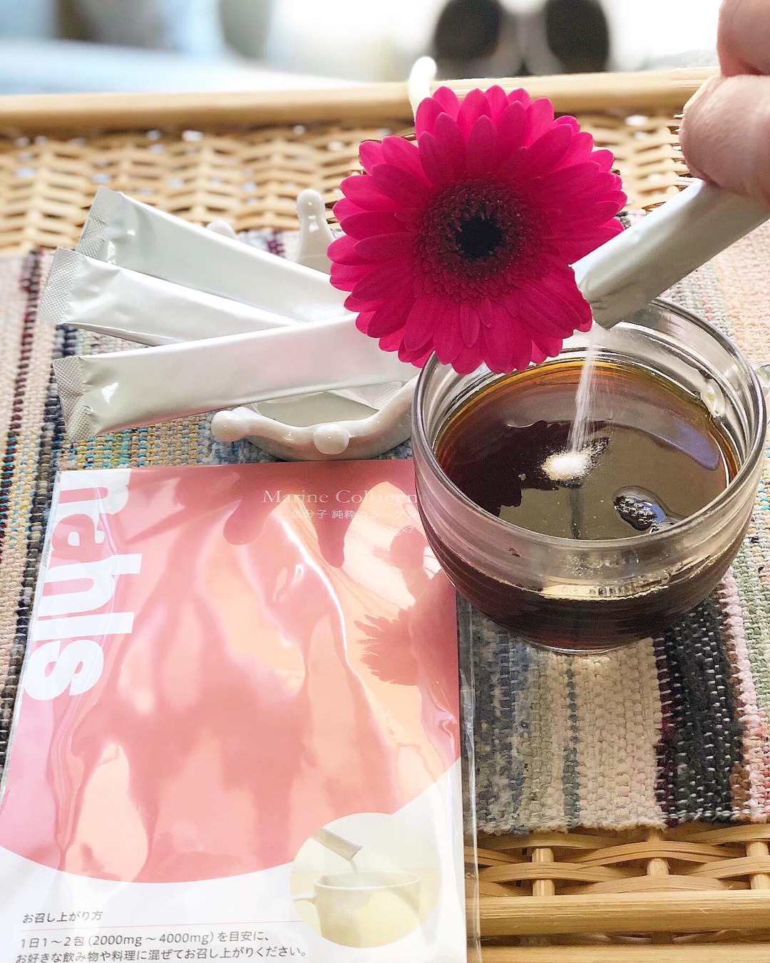 このコラーゲン1包全部を溶かして飲んでしまうことが多いです。