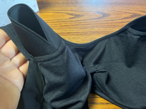 ふくらみがある方は、胸の外側の斜め下あたりにくるようにセットします。